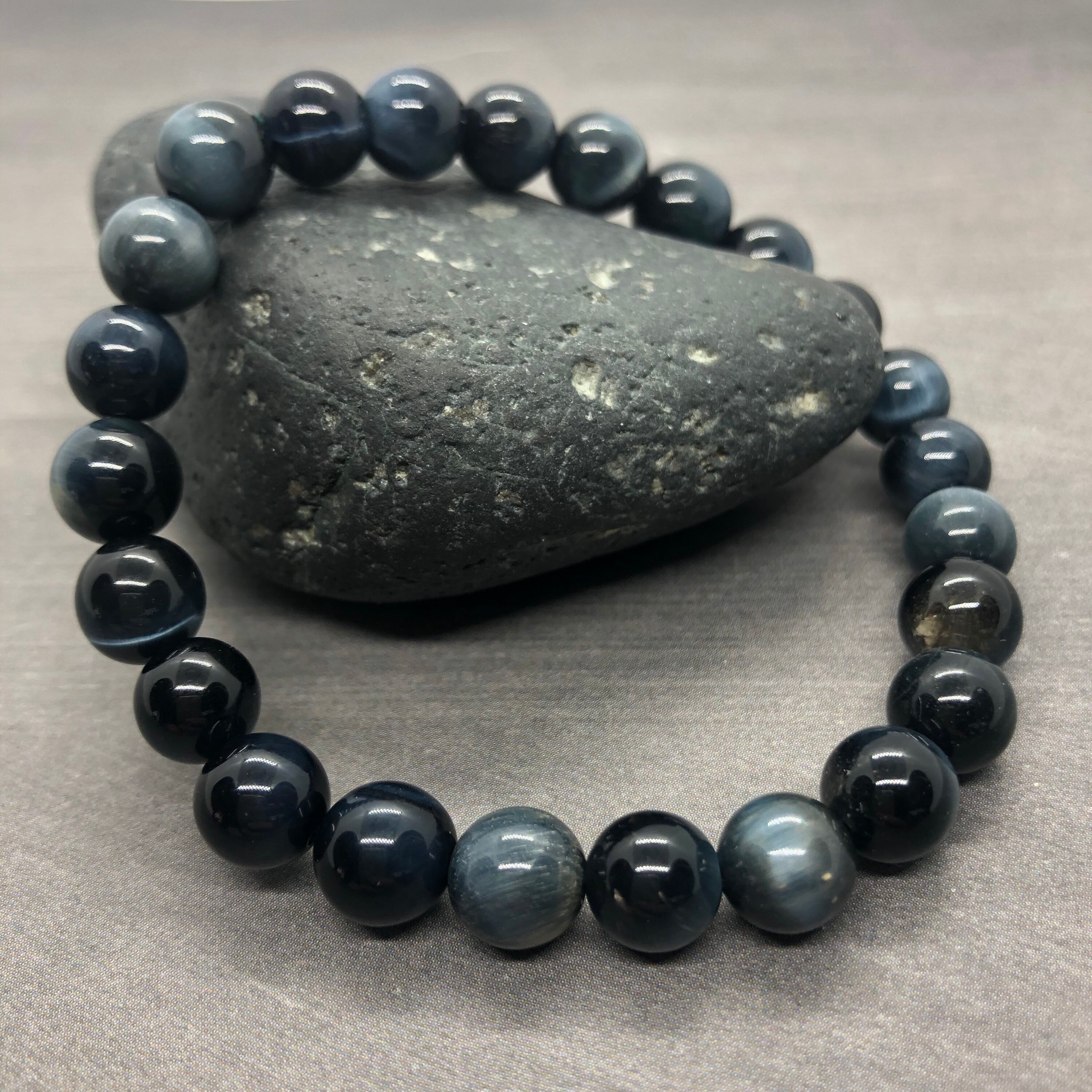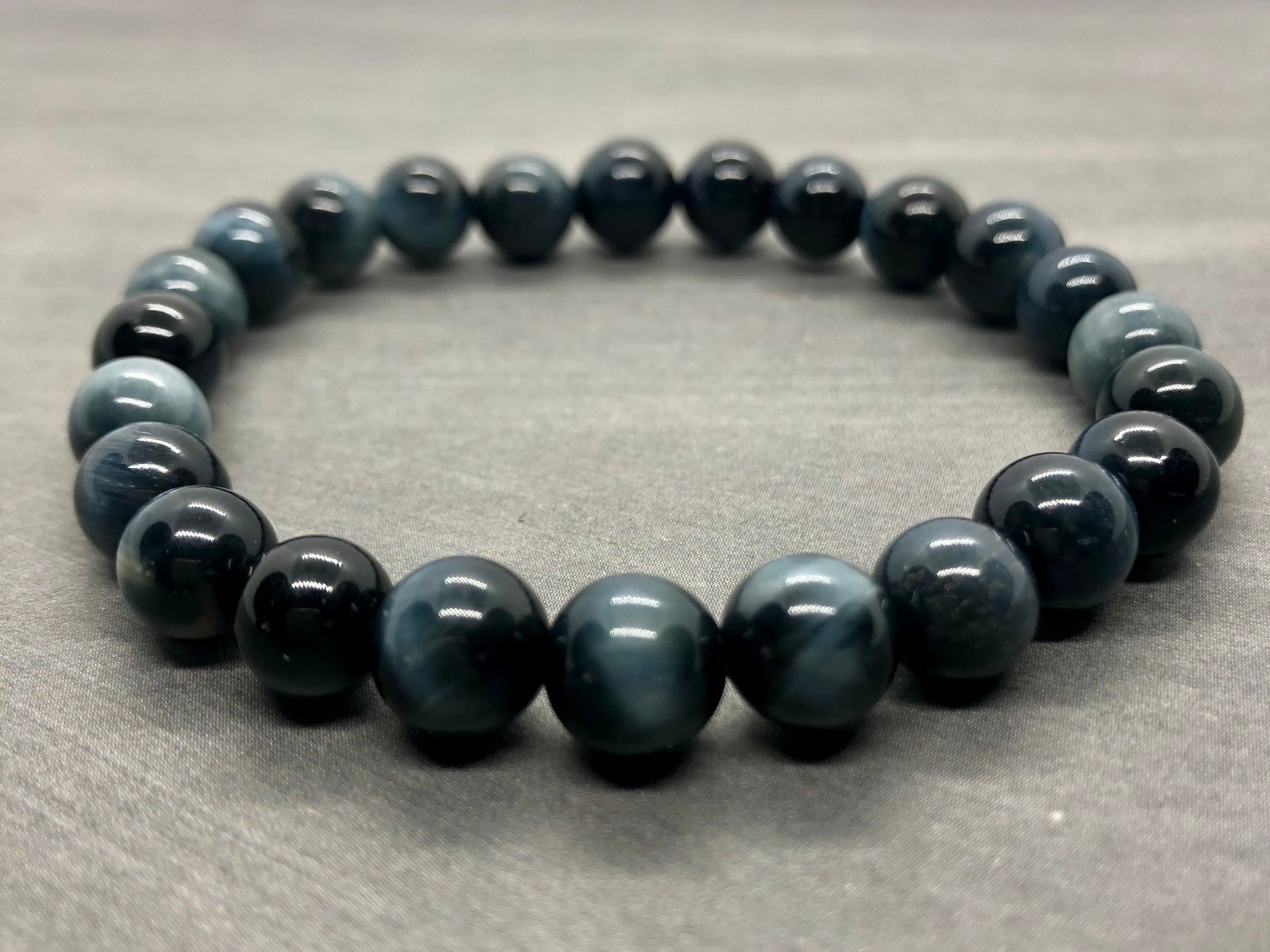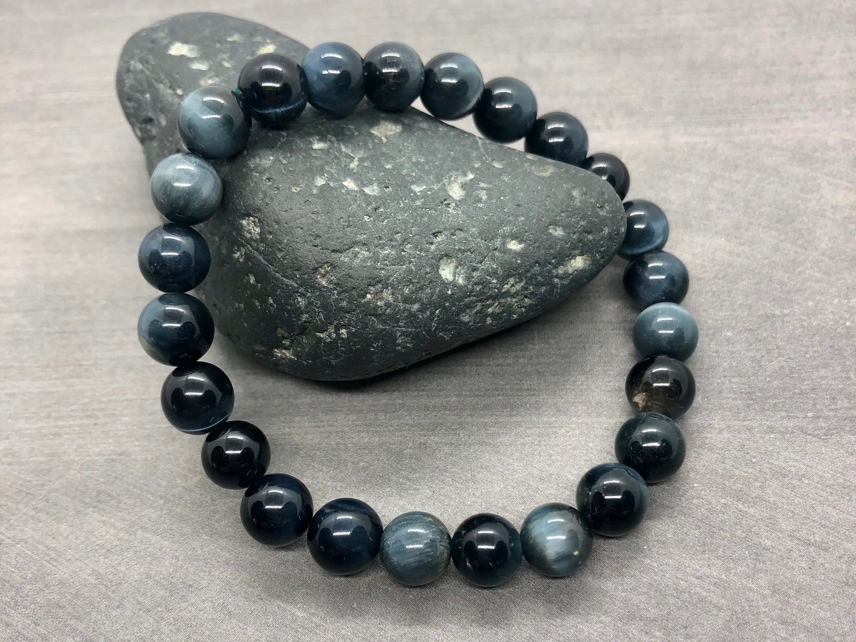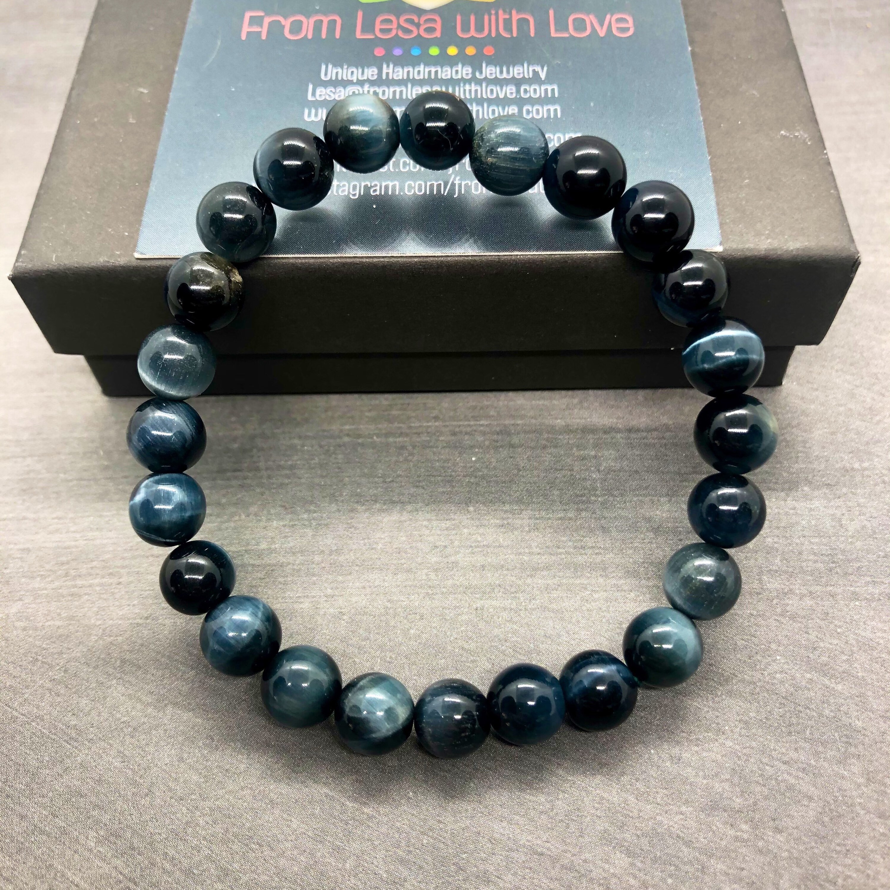 This gorgeous bracelet contains AAA quality blue tiger eye stones. This bracelet assist with strength, courage and fortitude.